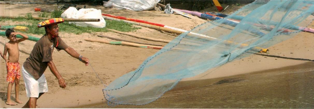 Ne vous y trompez pas. La pêche à l'épervier ne se pratique pas comme la chasse à l'épervier, avec un rapace qui repèrerait le poisson et tel un pélican fondrait sur lui. L'épervier est un filet utilisé pour attraper des pisquettes, petits poissons servant d'appât ou préparé en friture pour les accras. Ils ne sont guère qu'une poignée aujourd'hui aux Saintes à pratiquer ce genre de pêche et encore moins à fabriquer ce fameux filet rond en fil de nylon que l'on lance en suivant le vent.